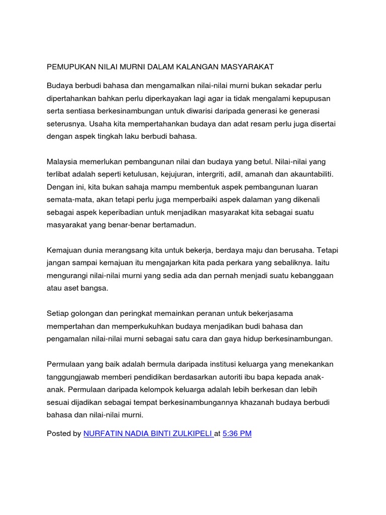 Pemupukan Nilai Murni Dalam Kalangan Masyarakat Pdf